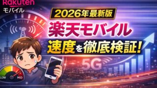 楽天モバイルの速度は本当に遅い?平均通信速度80Mbpsの実測データをもとに徹底解説。時間帯別の速度、大手キャリアとの比較、口コミや遅い原因、改善方法までまとめました。契約前に楽天モバイルの速度を知りたい方は必見です。