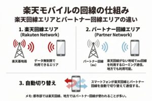 実際には、楽天モバイルの通信エリアにはいくつかの仕組みがあります。