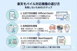 ここでは、楽天モバイル対応機種を選ぶときに失敗しないポイントをわかりやすく解説しますね。