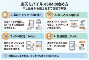 この記事では、楽天モバイル eSIMの基本から、メリット・デメリット、申し込み手順、どんな人におすすめなのかまで、初心者目線で丁寧に解説しています。