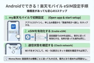楽天モバイル eSIM 設定について、初めての人でも迷わず進められるように解説します。