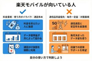 この章では、楽天モバイルの料金プランが向いている人と、そうでない人を分けて整理します。