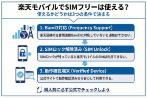 だからこそ、楽天モバイル SIMフリー端末を使うなら「Band3対応」は最優先チェック項目です。